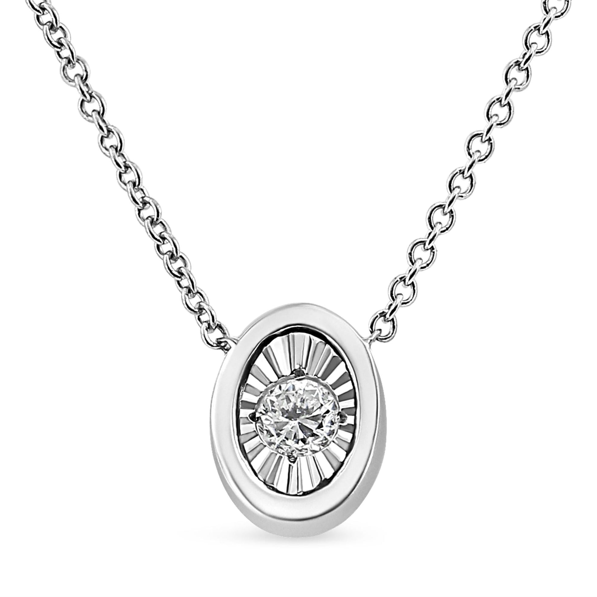 10K White Gold 1/10 Cttw Miracle Set Round-Cut Diamond 18" Pendant